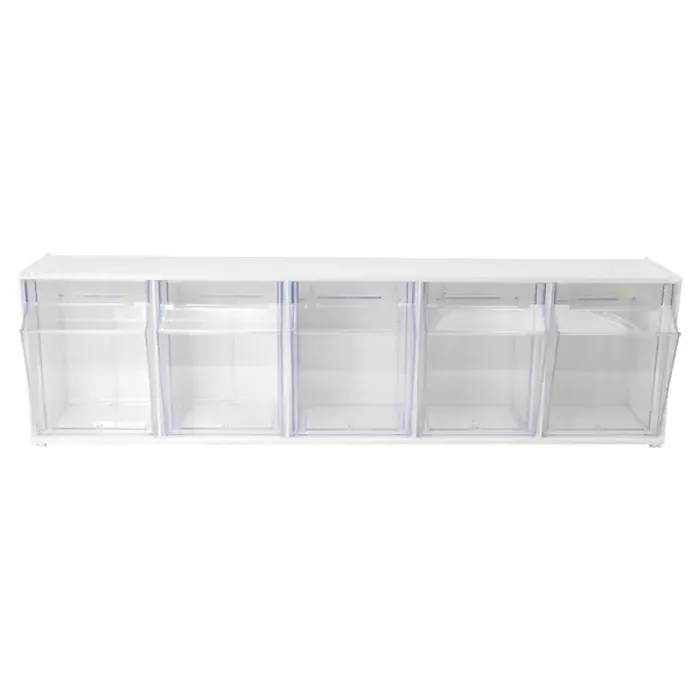 Deflecto DEF 20503OP Tilt Bin Interlocking Multibin Storage Organizer 5 Compartments 6.5 Height X 23.6 Width X 5.3 Depth Desktop White 1 Each