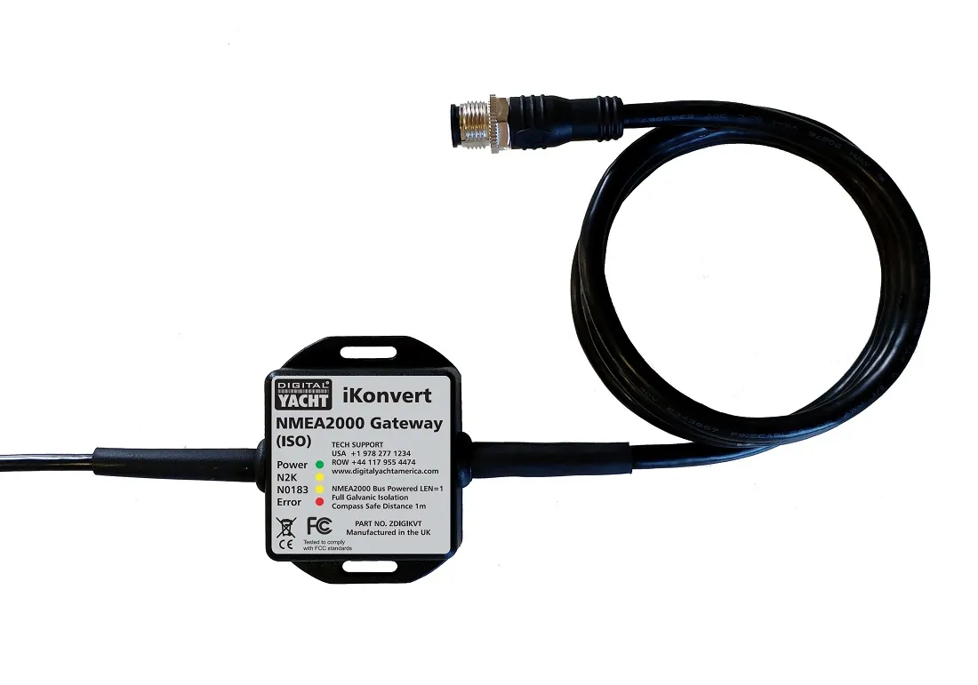 The iKonvert Gateway is compact and its housing is easy to mount. It features an integral NMEA0183 cable and standard NMEA2000 Micro drop cable (male). In addition, it takes its power from the NMEA2000 network. It also provides full galvanic isolation between the NMEA0183 and NMEA2000 networks. Hence, iKonvert is the perfect solution for all NMEA conversions.