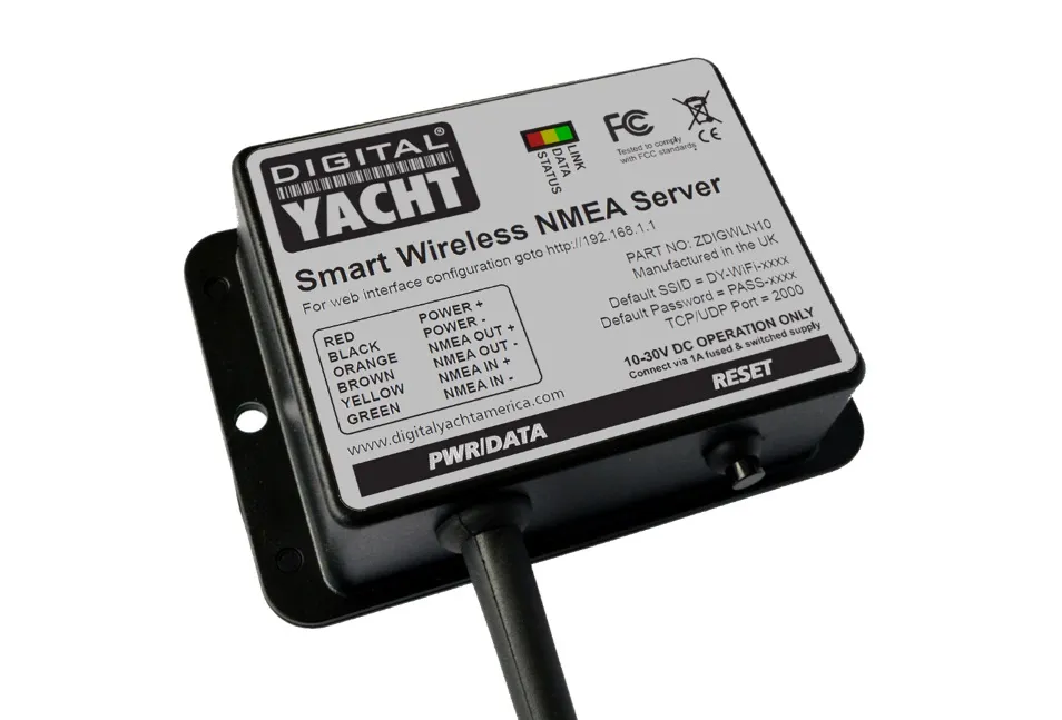 Digital Yacht's new WLN10 Smart NMEA to WiFi gateway takes iPad and tablet integration afloat even further with the ability to connect to existing on board GPS, AIS and instrument systems and transfer data wirelessly to an iPad or tablet - allowing compatible apps to display and compute with real time information. The WLN10 creates a secure, password protected wifi network on board to footprint the boat with data.
