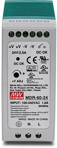 TRENDnet's 60 W Single Output Industrial DIN-Rail Power Supply, model TI-M6024 (Mean Well MDR-60-24), supplies up to 60 Watts of power to industrial PoE equipment such as switches, network cameras, and WiFi access points. This IP30 rated power supply comes with an integrated DIN-rail mount and overload current protection.