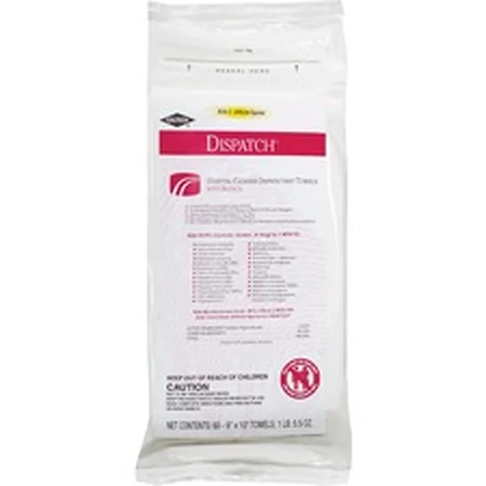 Dispatch Hospital Cleaner Disinfectant Towels with bleach are intermediate-level, hospital disinfectant wipes that meet CDC, CMS and OSHA guidelines for cleaning and disinfecting surfaces in healthcare facilities. Ready-to-use, one-step wipes contain a 1:10 bleach dilution. Premoistened towels are EPA-registered to kill C. difficile spores in 3 minutes and other common healthcare pathogens just 1 minute. These wipes kill 99.9999 percent of C. difficile spores, according to the current, EPA-recommended testing standard (June 2014). They are designed for clinical usage for disinfecting equipment and high-touch surfaces. Wipes contain an anticorrosion agent and are formulated for broad surface compatibility with healthcare surfaces, including stainless steel, glass, plastic, porcelain, glazed ceramic, laminated surfaces and vinyl. Light fragrance provides a comforting scent for your patient and staff. Disinfectant towels are intended for use in healthcare settings.