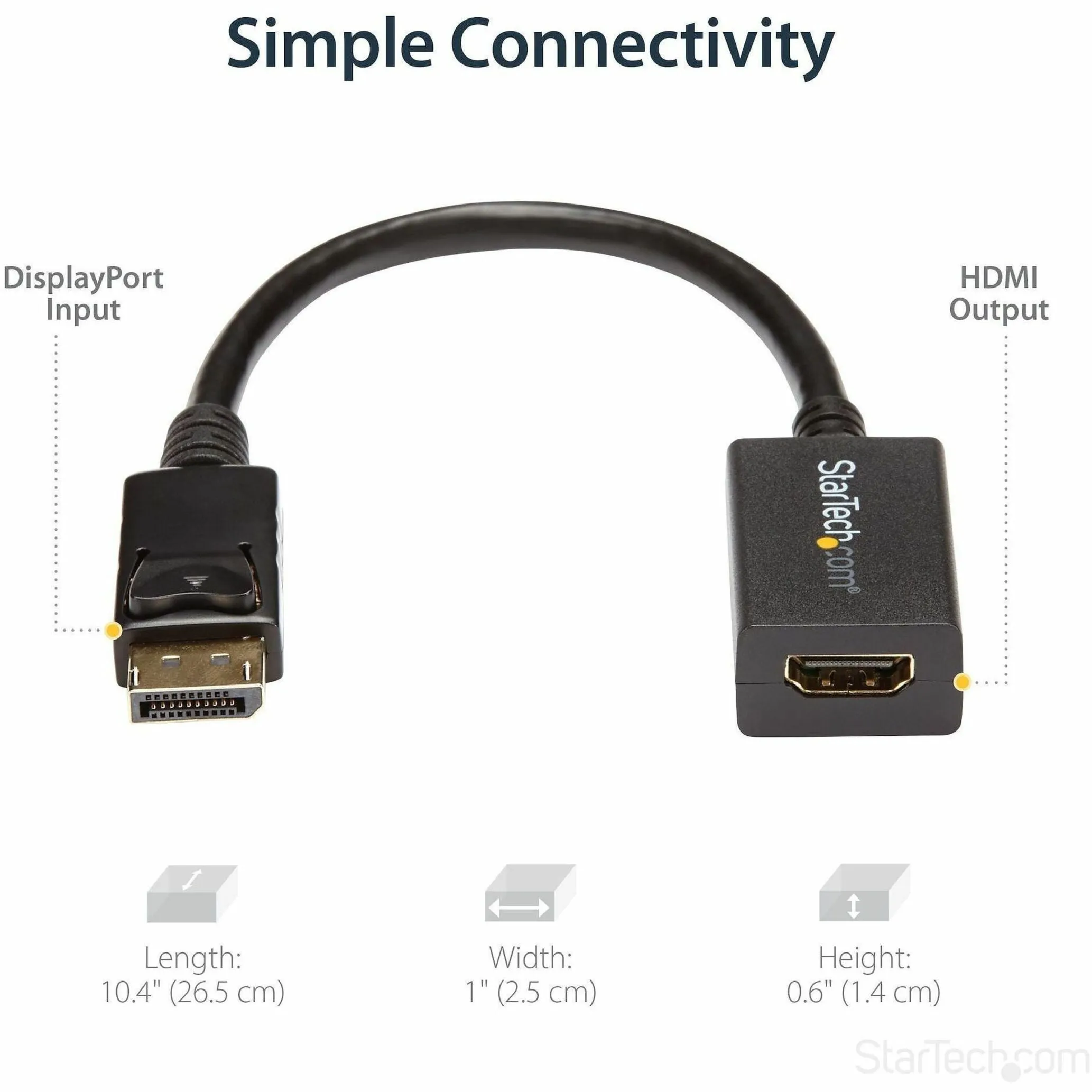 The StarTech.com DP2HDMI2 DisplayPort® to HDMI® Adapter lets you connect an HDMI-enabled display or projector to a DisplayPort out port from a computer (desktop or laptop), eliminating the expense of having to upgrade your display for DisplayPort compatibility.