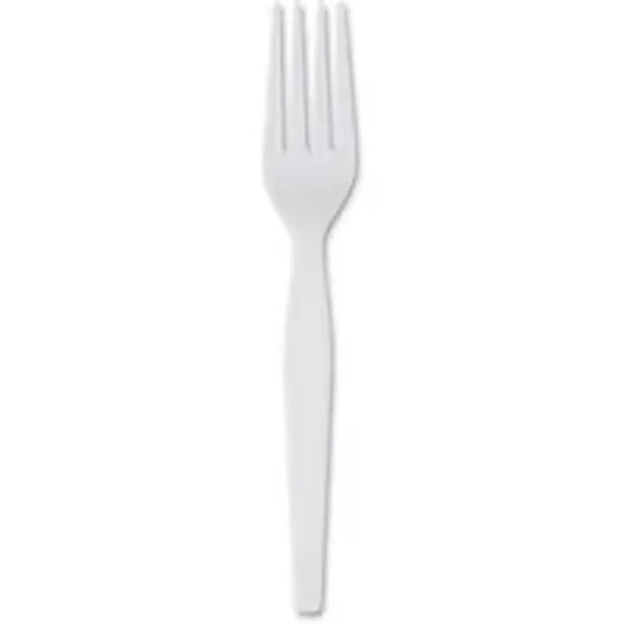 Full-size, dinner-length cutlery is made of strong, shatter-resistant, durable polystyrene. Plastic forks are ideal for office parties, luncheons and breakroom use. Heavyweight construction offers a balance of rigidity and flexibility.