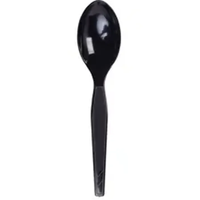 Plastic teaspoons with an elegant black color are ideal for office parties, luncheons and breakroom use. Use with cold or hot foods. Utensils are made of medium-weight polystyrene for rigidity and flexibility as well as shatter-resistant and durable. Each teaspoon measures 5-7/8". Efficient Dixie dense pack packaging helps conserve valuable storage space.
