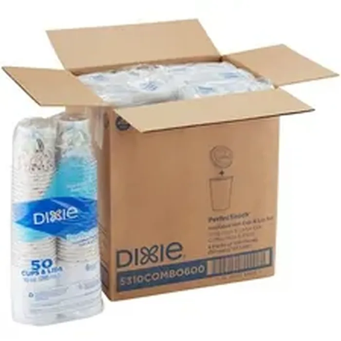 Georgia DXE 5310COMBO6CT Dixie Perfectouch Insulated Paper Hot Coffee Cup Amp; Lid Sets By Gp Pro 10 Fl Oz 300 Carton White Coffee Hot Drink