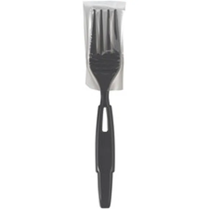 Ultra SmartStock Series-W Heavyweight Fork Refill is designed for use in Dixie Ultra SmartStock Series-W Wrapped Cutlery Dispensers (SSW3D85, SSW1D85). Each full-length polypropylene fork is individually wrapped at the critical end to promote hygiene. Elegant, black design helps you promote an upscale image. Break-resistant forks offer excellent value without sacrificing performance. They come on preloaded skewers that hold 40 pieces of cutlery to save load time compared to wrapped cutlery bins. They are ideal for takeout and delivery orders.
