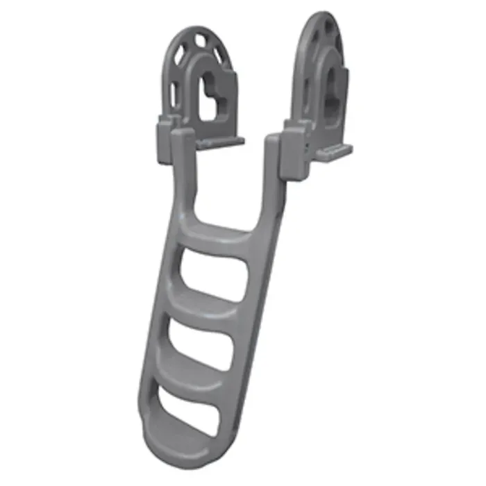 Stand-Off Flip-Up Polyethylene Roto Molded 4-Step Dock Ladder - GreyTough and durable, this roto-molded ladder swings up and out of the way, locking in place when not in use. The Stand Off roto-molded ladder extends into the water at a 60 degree angle to make getting out of the water easier. Will not corrode with exposure and will not fade or crack. Molded-in U.V. inhibitors and fungicides.