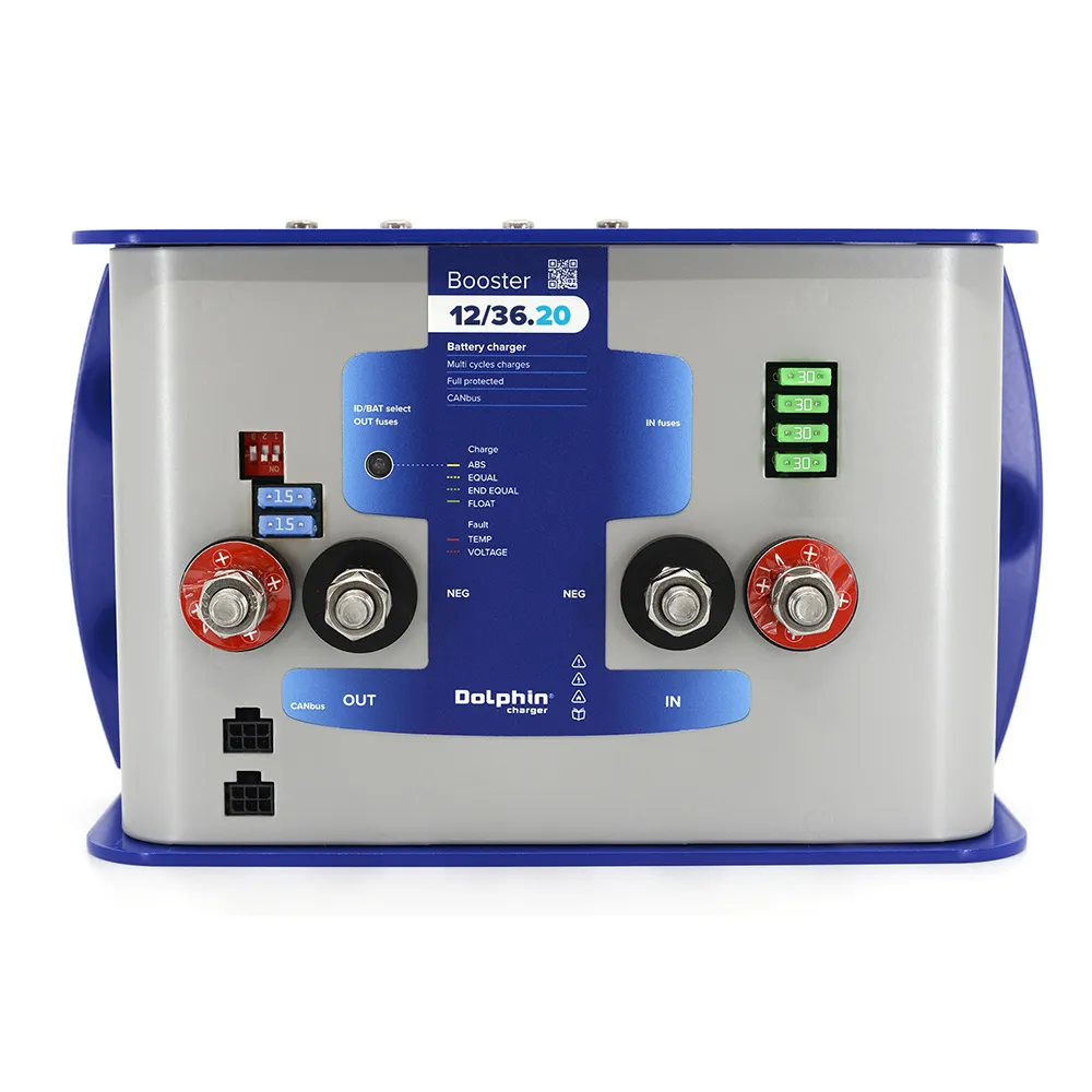 Your boat has a 12V alternator, and you need to charge a 24V or 36V battery “on the run”? Dolphin has the solution. Our boosters are true DC/DC chargers with a 3-stage smart charge feature. Compatible with 4 different technologies, including Gel, AGM, or Lithium LIFEPO4. Dolphin booster is the perfect choice to charge your bow thruster or trolling motor batteries!