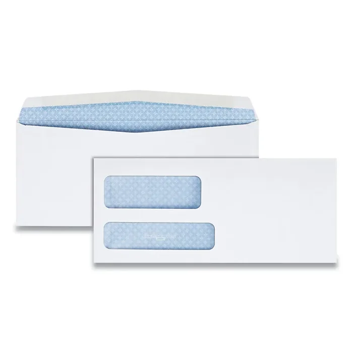 The Double Window Security-Tinted Check Envelope is designed for professional mailing purposes. With its double window feature, this envelope allows for clear display of addresses without additional labels. Made from security-tinted material, it ensures that sensitive information remains private during transit.