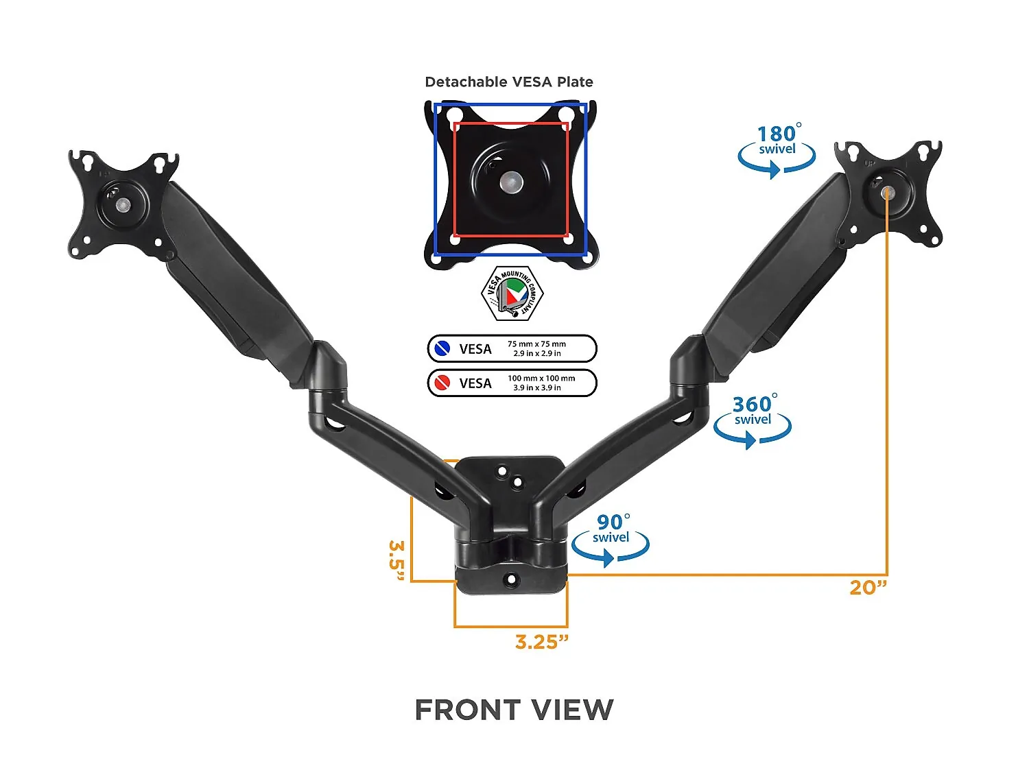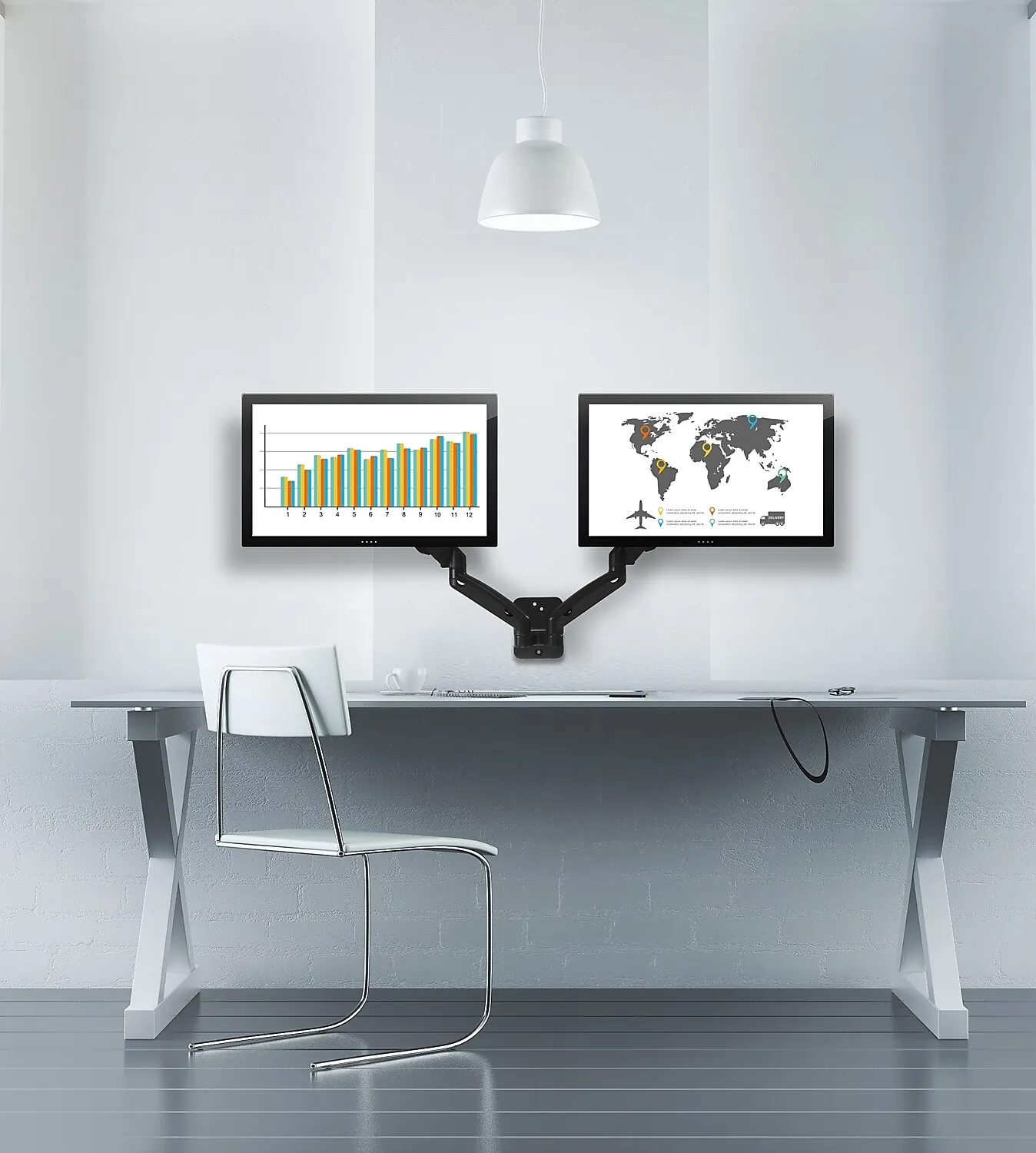 The Dual Arm Full Motion Monitor Wall Mount is designed for ultimate flexibility. With a 180-degree rotation, you can easily switch one monitor to portrait mode while keeping the other in landscape mode. This functionality allows you to angle the monitors toward each other, enhancing your viewing experience.
