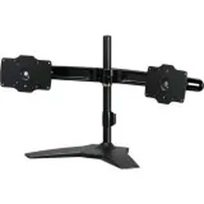General InformationThis incredibly versatile product supports up to two 32" monitors each with a maximum individual weight of 33.1 lbs! Not only will this strong and sturdy mount have no trouble holding VESA certified 75x75 or 100x100 monitors, (fitting the above criteria), it is also extremely adjustable!Each monitor can be placed at a different height to accommodate different sized monitorsBoth monitors have 360 rotation (meaning landscape, portrait, or anything in-between)Also included is a +/- 20 tilt in any direction Individually for BOTH Monitors, ensuring maximum user comfortHeight adjustable, with a maximum height of 13" from the desk to the center of the mounting deviceStudies show that dual monitors can increase productivity by up to 50%Benefits of Stand Mounting: This type of mount is the classic desk stand. Maneuverable and reliable, stand mounts are the most popular mounting choice for monitors.Can be moved around your desk, no unscrewing necessaryReliable; most people rely on stands to support their monitorsNo need for a desk lip to mount onto like clamp based mountsProduct InformationDevice Supported: Flat Panel DisplayMaximum Load Capacity: 66.20 lbMinimum Screen Size Supported: 24"Maximum Screen Size Supported: 32"Features: RotateFeatures: Adjustable HeightFeatures: Cable ManagementFeatures: Adjustable Viewing AngleFeatures: SwivelFeatures: TiltFeatures: PivotFeatures: ErgonomicFeatures: Smart Torque AdjustmentPhysical CharacteristicsColor: BlackVESA Mount Compatible: YesVESA Mount Standard: 100 x 100VESA Mount Standard: 75 x 75Material: SteelMaterial: Aluminum AlloyMaterial: PlasticHeight: 19.9"Width: 42"Depth: 12.1"Weight (Approximate): 11.35 lbMiscellaneousAdditional Information: Screw Type: M4, M5, M6, M8Easy InstallAdjust +/- 20 degree tilt in any directionArms Rotate 360 Degrees About the Central PoleCompatibility: 2 x LCD/LED MonitorCountry of Origin: TaiwanWarrantyLimited Warranty: 3 Year