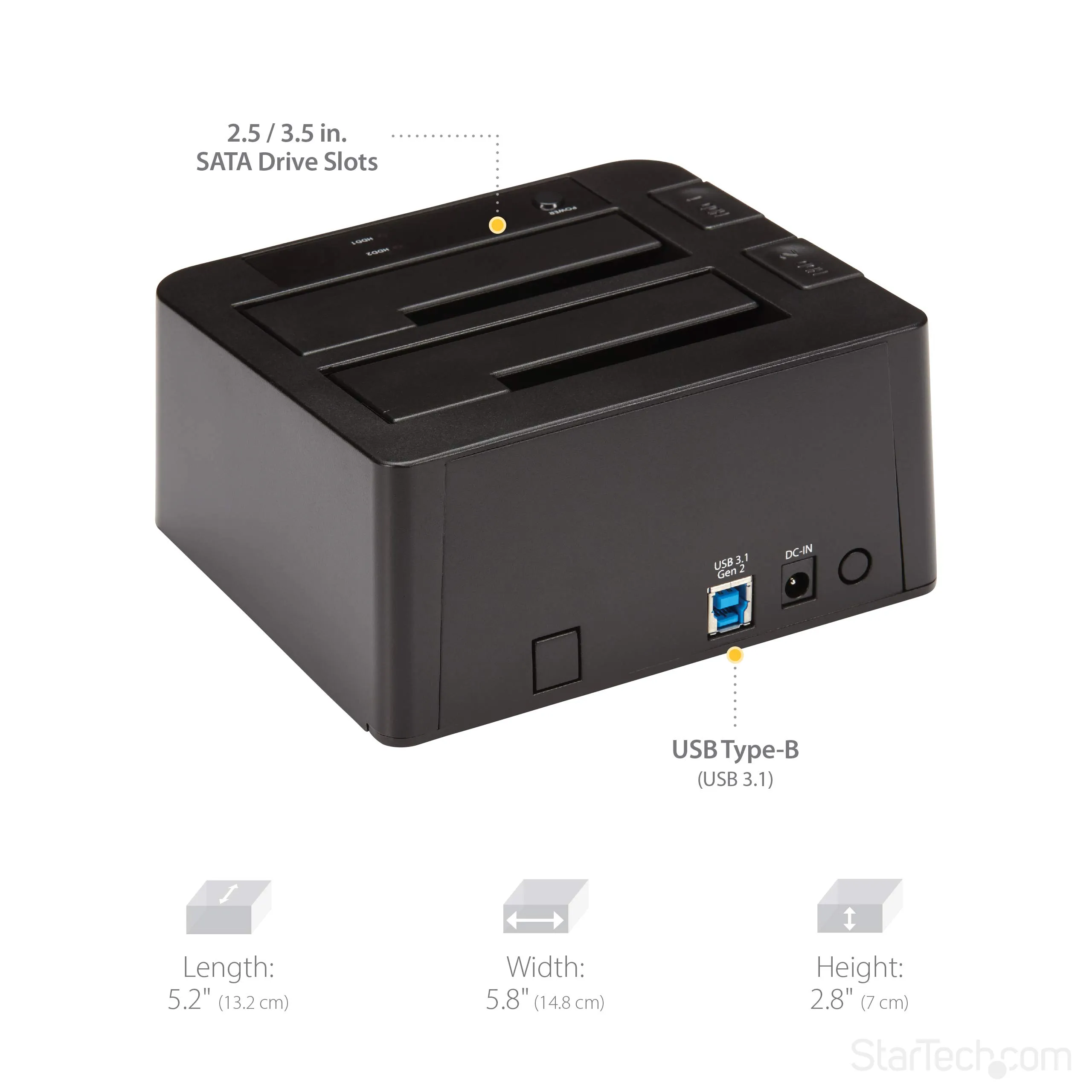 DUAL-BAY HARD DRIVE DOCK FOR 2.5 / 3.5 SATA DRIVES; SATA III (6.0 GBPS) HDD/SSD