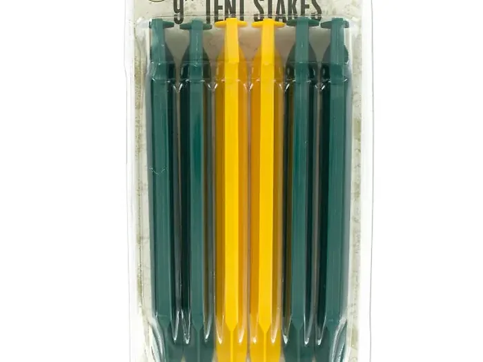 Secure your tent quickly and effectively with our 6-piece Plastic Tent Stakes Set. Designed for reliability, these stakes are crafted from durable plastic in vibrant green and yellow colors, ensuring visibility on the ground. Each stake measures approximately 9 inches in length, featuring pointed ends for easy insertion into the ground and hooked tops for simple removal. Perfect for camping, outdoor events, and backyard use, this set helps keep your tent firmly in place even in windy conditions.