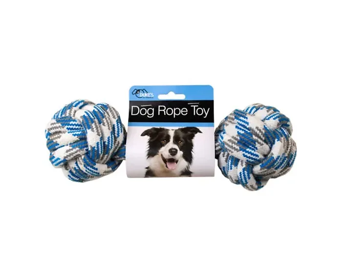 Your puppy or adult dog will absolutely love this durable blue and white Dog Rope Toy! Designed specifically for medium to large dogs, this toy is perfect for playtime and bonding. The rope is securely packaged in a hanging clamshell, ensuring it maintains its shape. The two large knotted rope balls on either side provide extra weight and durability, making this an excellent choice for tugging and chewing.