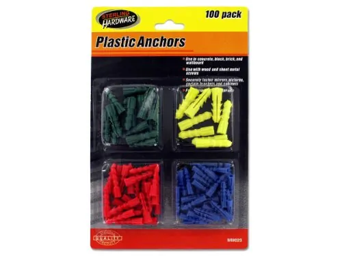 Introducing our Durable Plastic Anchors Set, perfect for both interior and exterior applications. This comprehensive 100-piece set is crafted from high-quality plastic, making it versatile enough for use in concrete, block, brick, and wallboard.