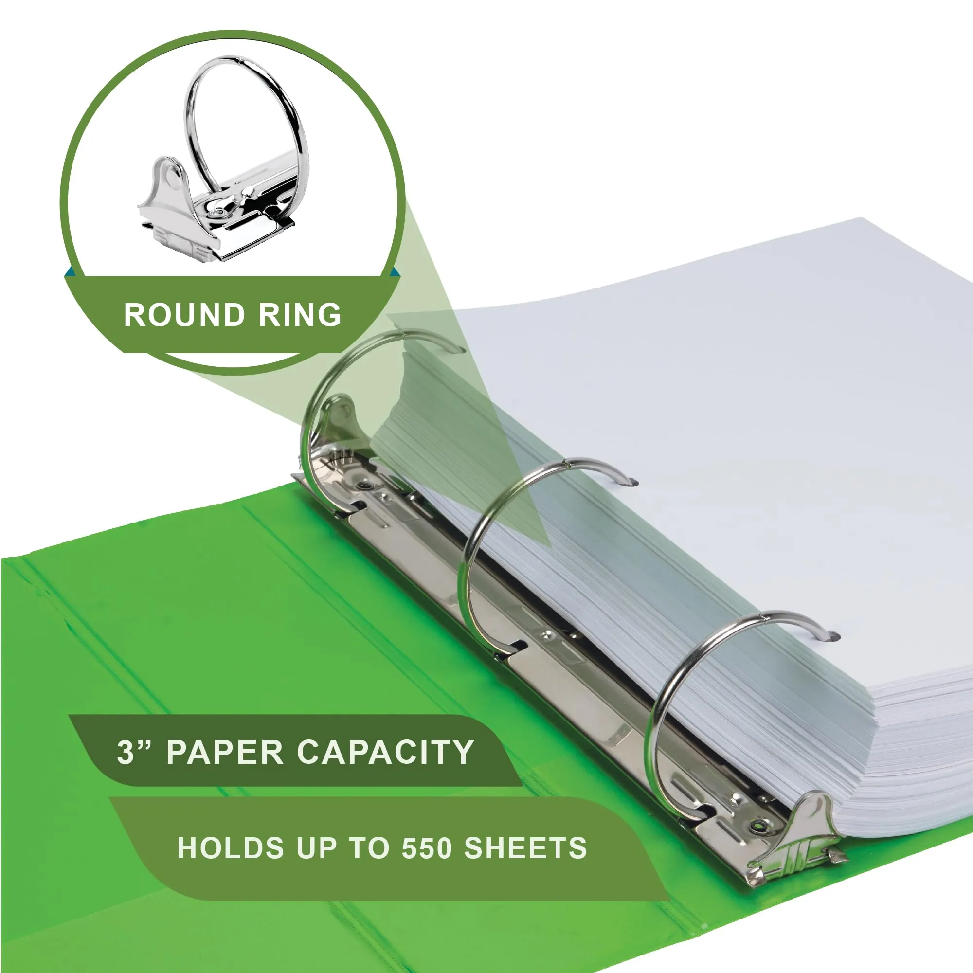 - Easy Customization: Each 3-inch 3 ring binder features a clear overlay with a non-glare finish; Our 3 ring binders allow for complete customization -- perfect for organization and presentations