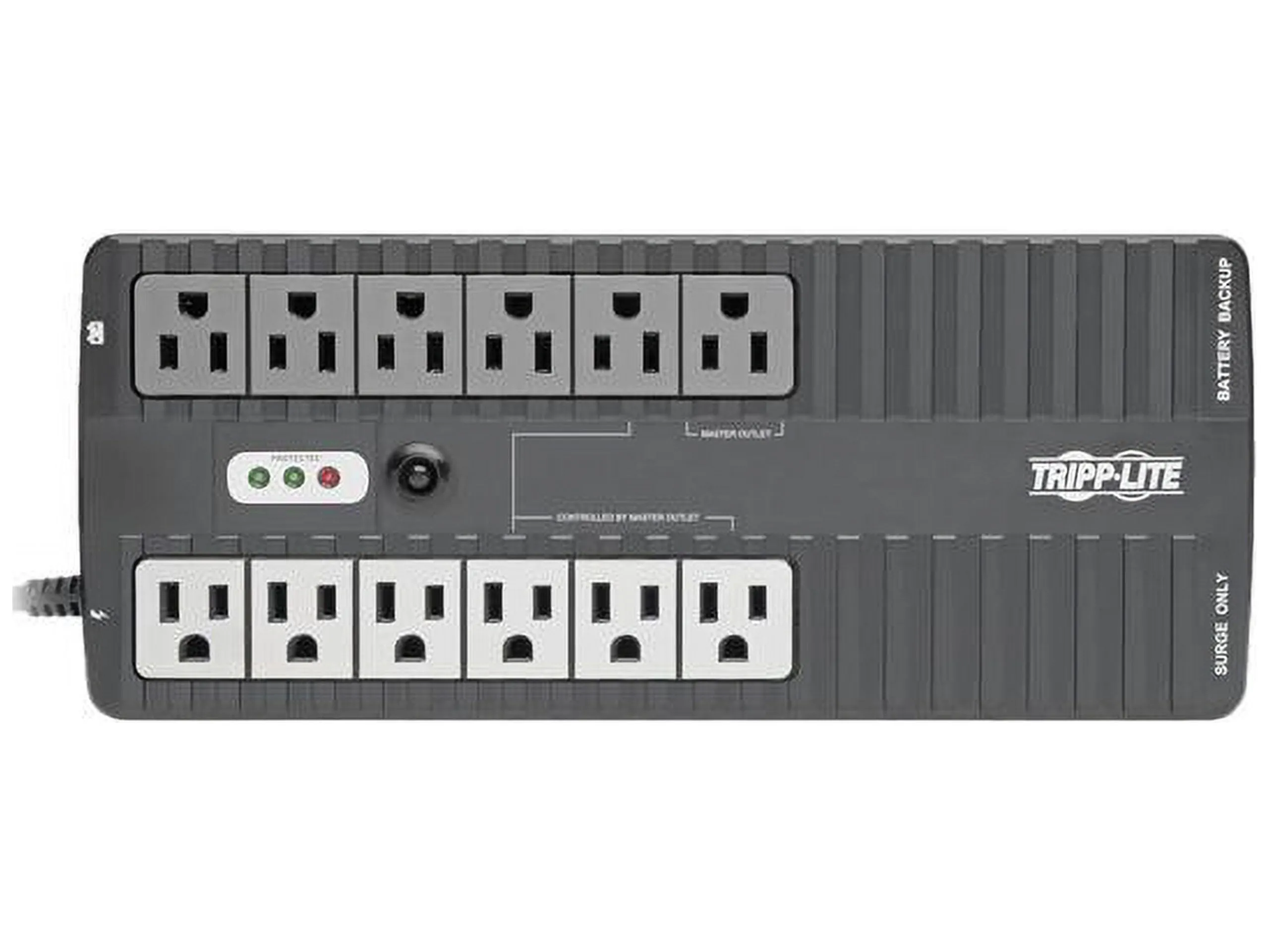 • Protects equipment against blackouts, brownouts, overvoltages, surges and line noise;• 750 VA, 450 watts standby;• 316 Joules of surge protection;• Keeps AC power running during blackouts to allow time for file saves and safe shutdown;• 12 outlets - 6 with battery backup and surge protection and 6 provide surge suppression only for printers, speakers, and other desktop equipment regarded as nonessential during a blackout;• Backup time varies according to load, but the ECO750UPS should keep an energy-efficient desktop computer with small LCD monitor powered as long as 36 minutes;• NEMA 5-15R outlets power and protect PC, home theater, or digital signage equipment;• Dual network data line jacks protect a wired peripheral from dangerous surges on a single 10/100Base-T or dial-up network connection;• Compact to sit on desktop or shelf, can also be wall mounted using built-in keyhole mounting tabs;• Home-friendly alarm remains silent in backup mode, sounding only when imperative;• Turns off outlets connected to printers, desk lamps, and other nonessential devices when not in use to save energy;• ENERGY STAR(R)-certified to save electricity, lower costs, and protect the environment;• 5-ft. power cord;• 3-year limited warranty; $100,000 Ultimate Lifetime Insurance (US, Canada, and Puerto Rico);• Includes USB cable and owner's manual;