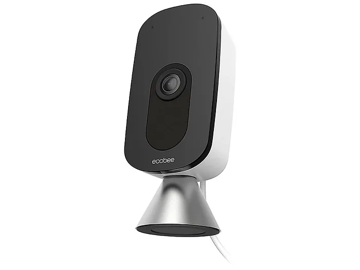 Introducing the new ecobee SmartCamera, designed for your indoor security needs. This 2022 model features a sleek design and is perfect for monitoring your home, whether it's for your baby, your pet, or overall security.