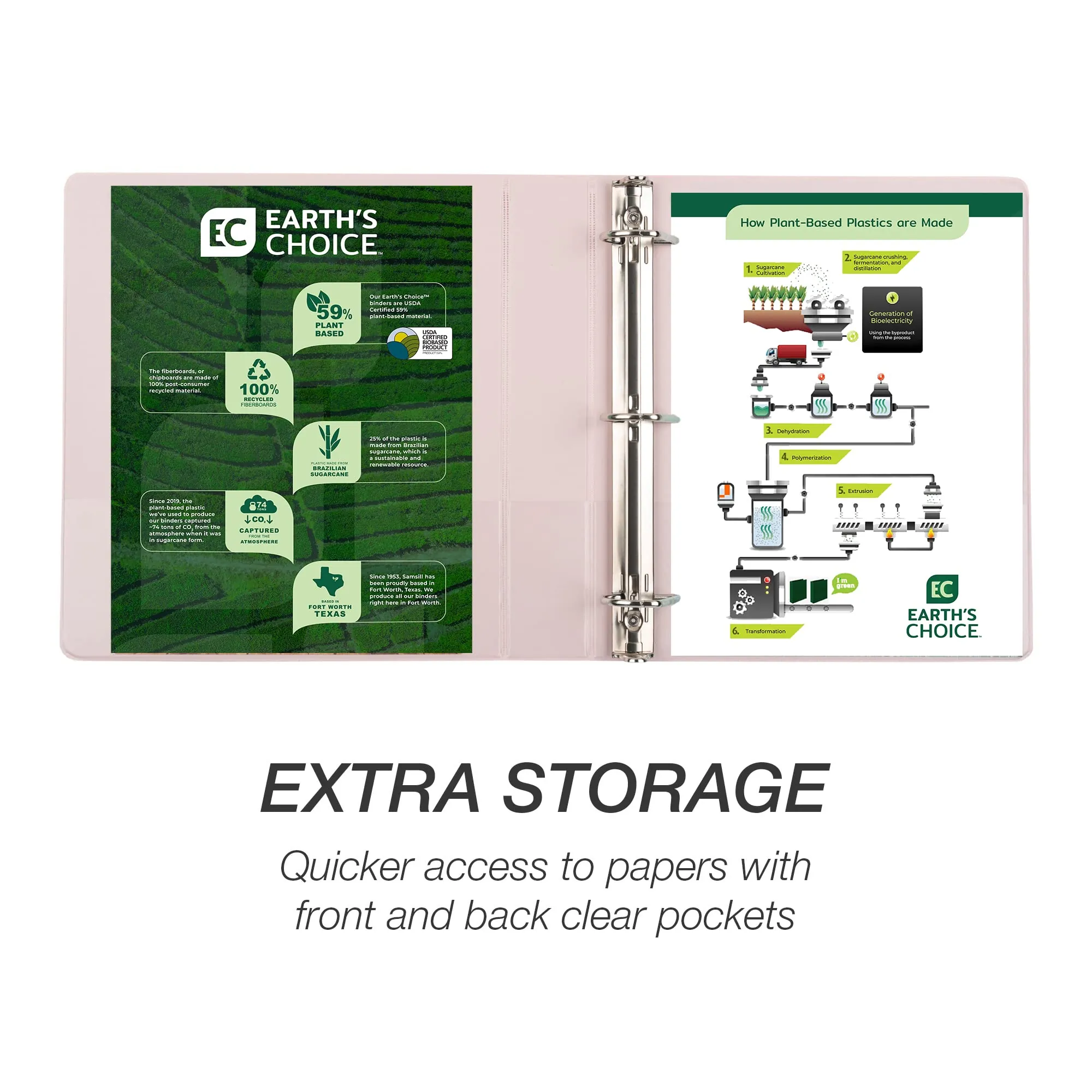 The Eco-Friendly 1" D-Ring View Binder 4-Pack is your ultimate organization solution for school, office, or home. Designed with sustainability in mind, these binders are made with at least 59% biobased material, certified by USDA. The covers utilize up to 25% plant-based renewable plastic, making them an environmentally conscious choice.