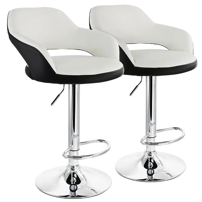 Elama ELM-705-WHT-BLK 2 Piece Adjustable Faux Leather Bar Stool In White With Black Trim And Chrome Base