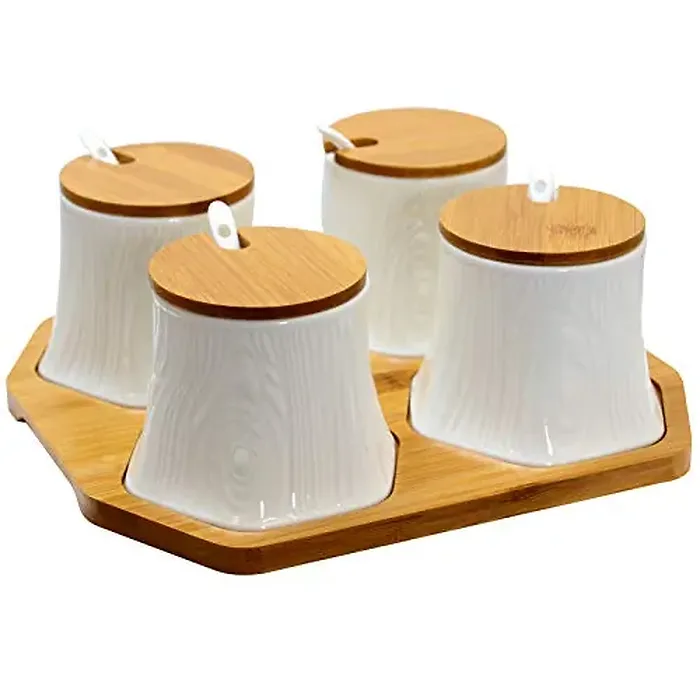 Ceramic Containers is a must-have for modern home & kitchen, with Lids, Spoons and a tray is perfect for home and office use.