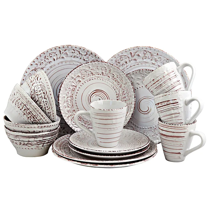 The Elama Malibu Sands 16-Piece Set is stoneware dinnerware is dishwasher safe for easy cleaning. It is also Microwave and Oven safe.