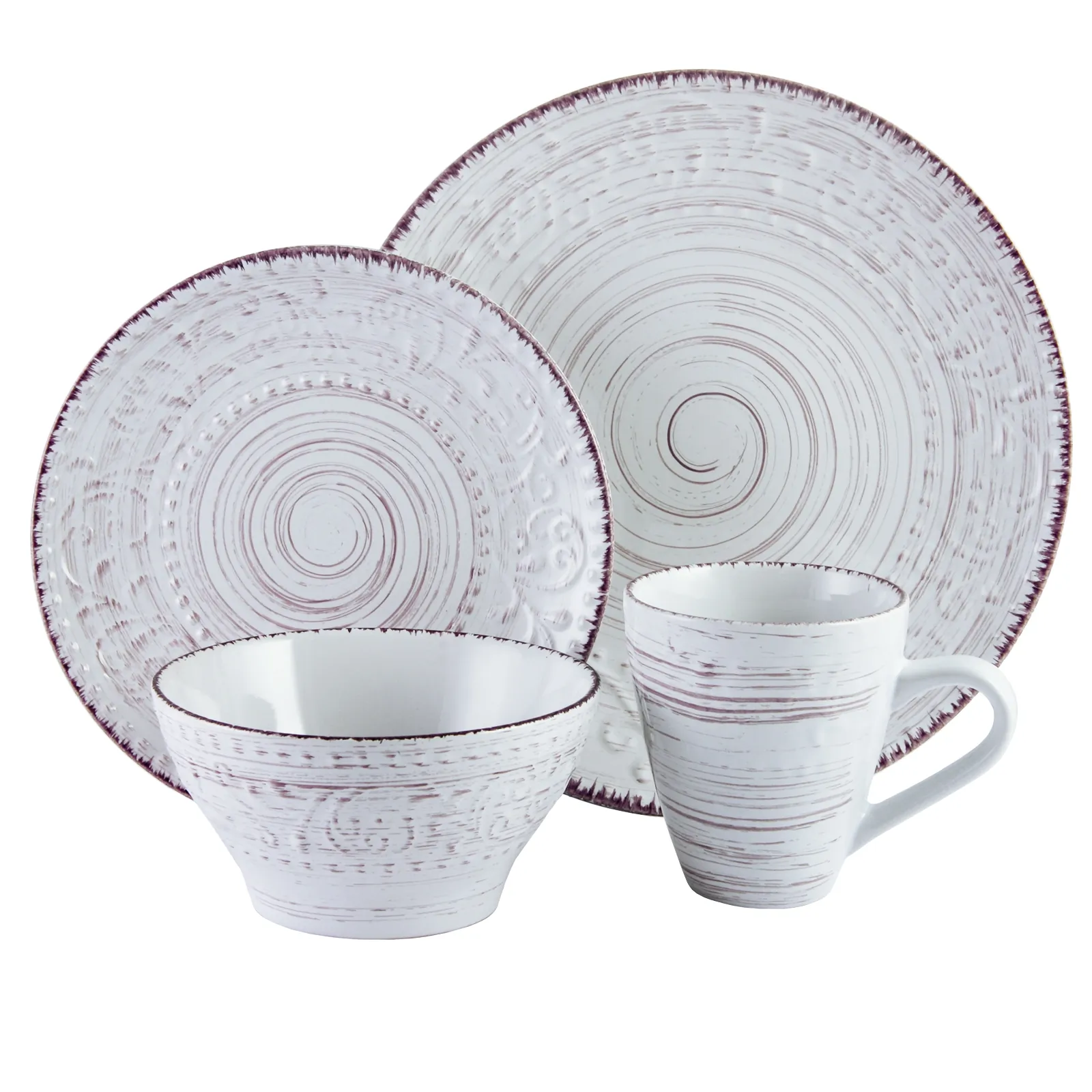 Experience a beachy dinner experience with this elegant dinnerware set. The Malibu Sands set features a beautiful hand paint work, laid on a sand embossed stoneware, that will transport you to the coast with every mouthful. Subtle enough for intimate dinners yet its singularity makes it ideal for hosting parties and bigger gatherings.This beautiful set includes: Four 10.75 in. Dinner Plates, Four 8.25 in. Dessert Plates, Four 6 in. Bowls, and Four 12 oz. Mugs
