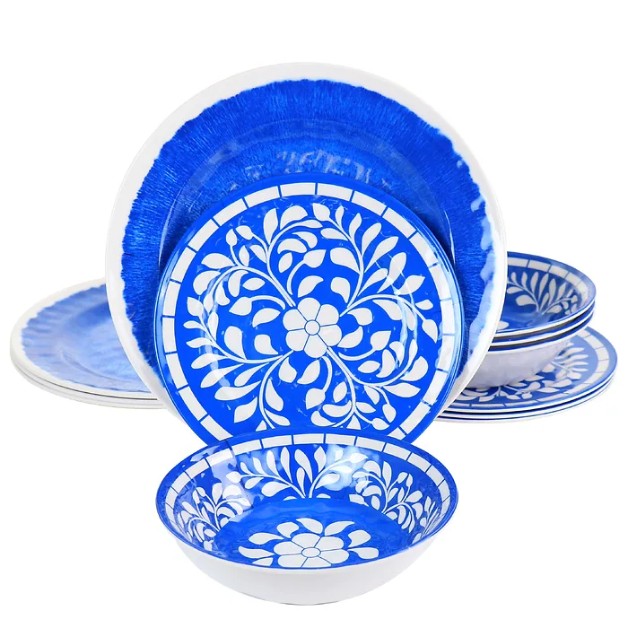 Elama EL-NELLY Nelly 12 Piece Melamine Dinnerware Set In Blue