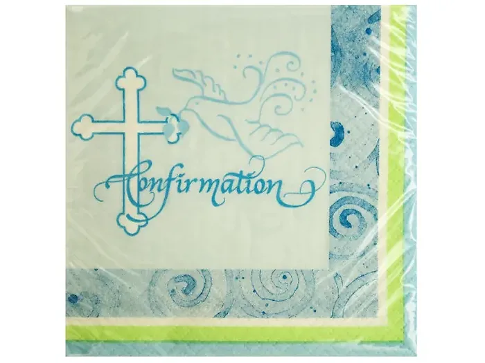 Each napkin measures approximately 9 4/5" x 9 3/4" and comes packaged in a convenient poly bag, making them perfect for any confirmation celebration.