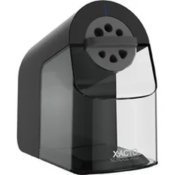 SchoolPro Electric Pencil Sharpener delivers efficient, versatile sharpening for your classroom or test center. Diameter dial fits nearly every pencil with six sizes and features a printed indicator for easy use. Fly-Away Cutter stops sharpening when the pencil reaches ideal sharpness. SafeStart Motor stops when shavings bin is removed for your safety. XL Shavings Bin is designed for less mess and is easy to empty. Pencil sharpener plugs into your AC outlet for convenient power supply.
