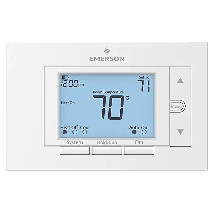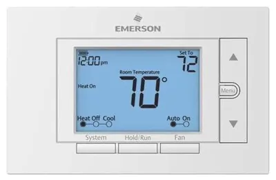 The Emerson UP310 is a versatile 7-day programmable thermostat designed to enhance your home's heating and cooling efficiency. With the ability to set customized schedules for each day of the week, this thermostat ensures your home is at the perfect temperature when you need it. The user-friendly DIY install wizard simplifies the setup process, guiding you through installation, programming, and everyday operation.