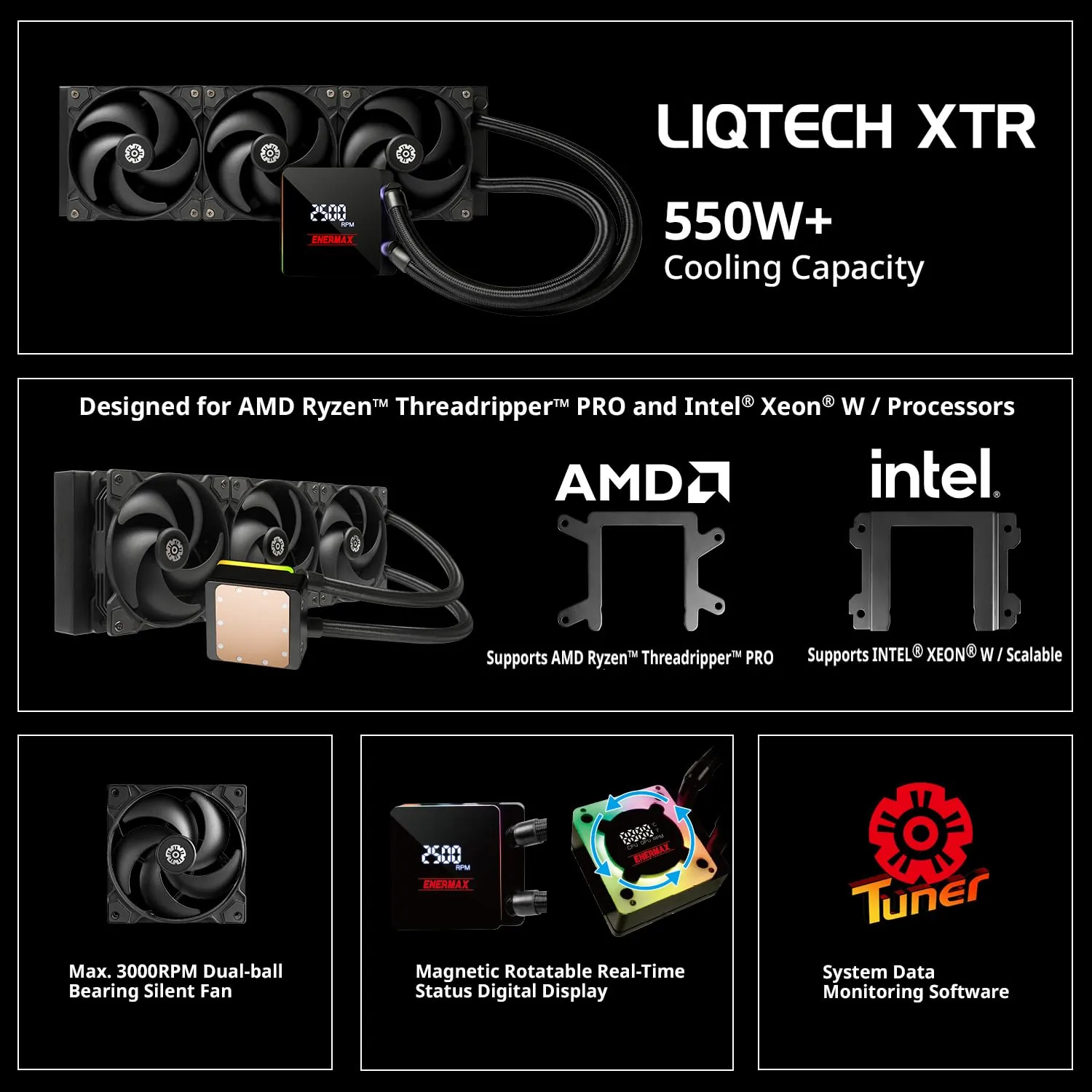 Enermax ELC-LTXTR360 Liqtech Xtr 360mm Liquid Cooler 550 W+ Tdp Cpu Socket Intel Lga 4677 Amd Tr5 Str5 Strx5 Swrx9 Sp6 Swrx8 Strx4 Tr4 Sp3
