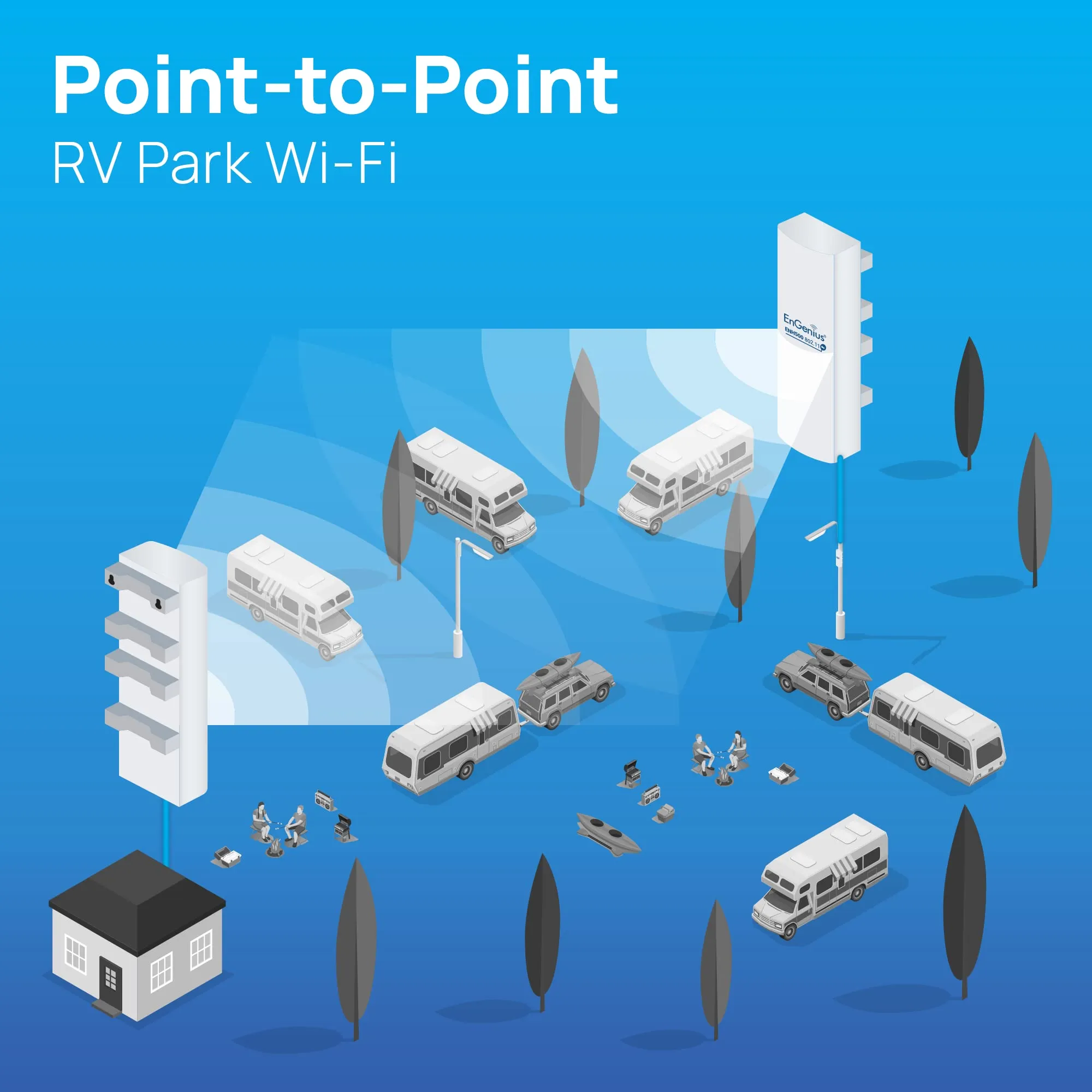- High 26 dBm transmit power extends Wi-Fi to yard or building-to-building.