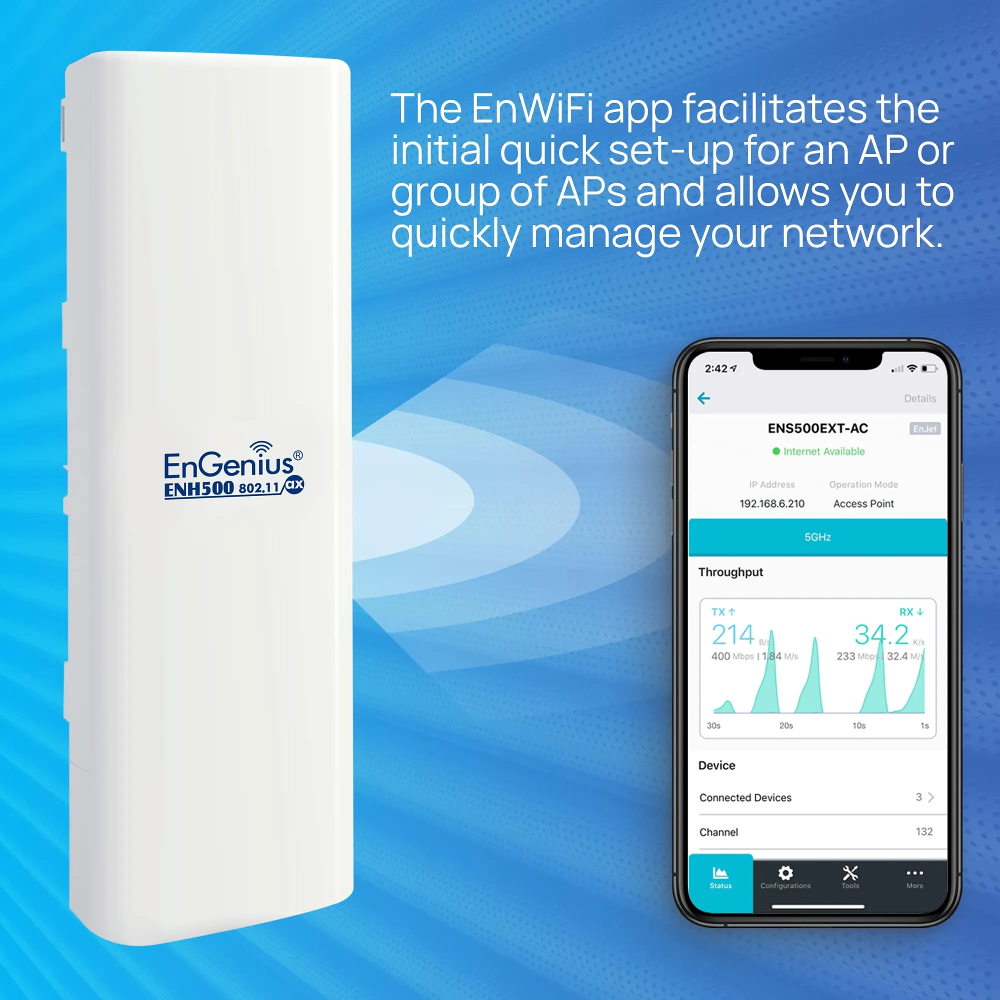 - Simple, Intuitive interface via EnWiFi app for local AP configuring & monitoring.