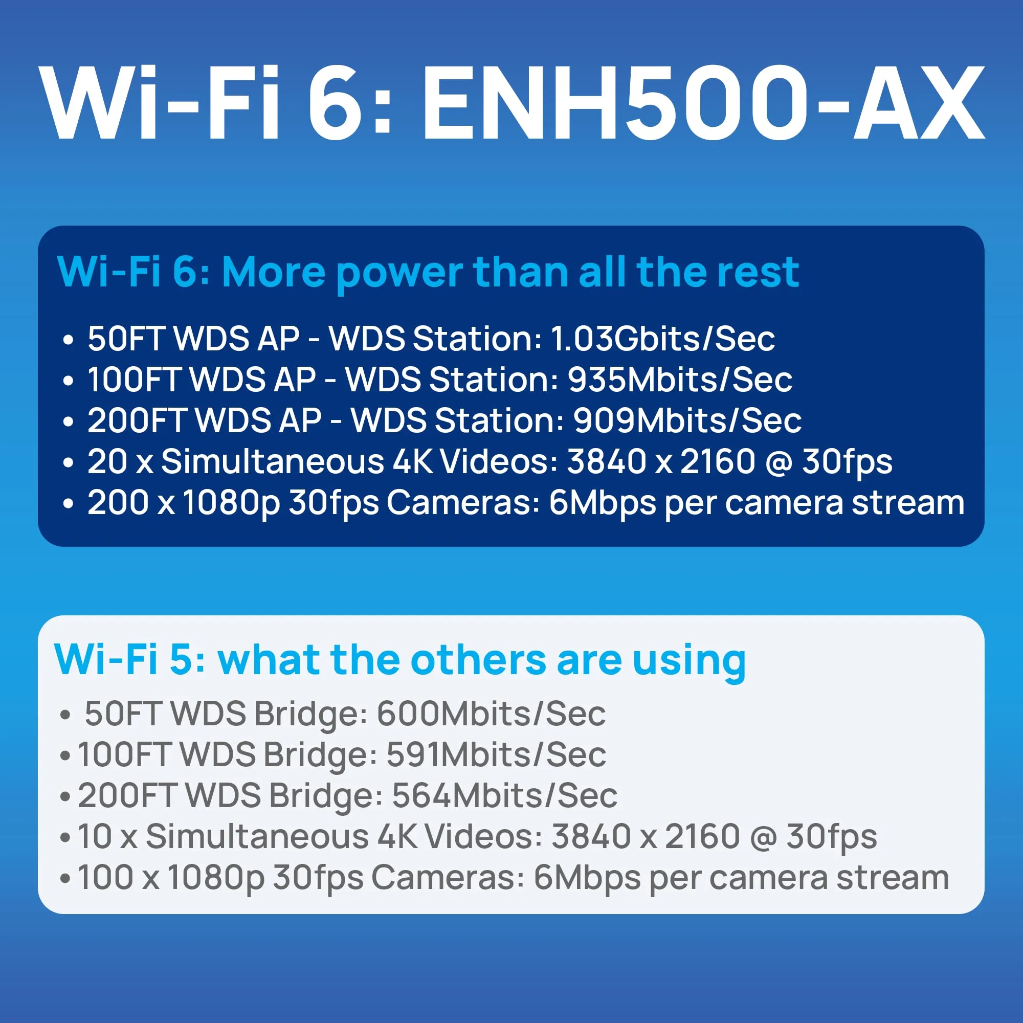 - Wi-Fi 6 technology for high-performance and efficiency Wi-Fi in outdoor environments