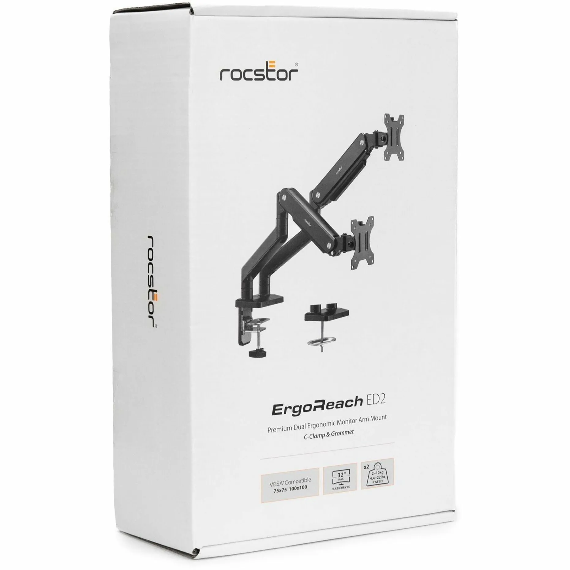 Rocstor Y10N012-B1 Ergoreach Ed2 Premium Dual Ergonomic Monitor Arm Cclamp Amp; Grommet Supports