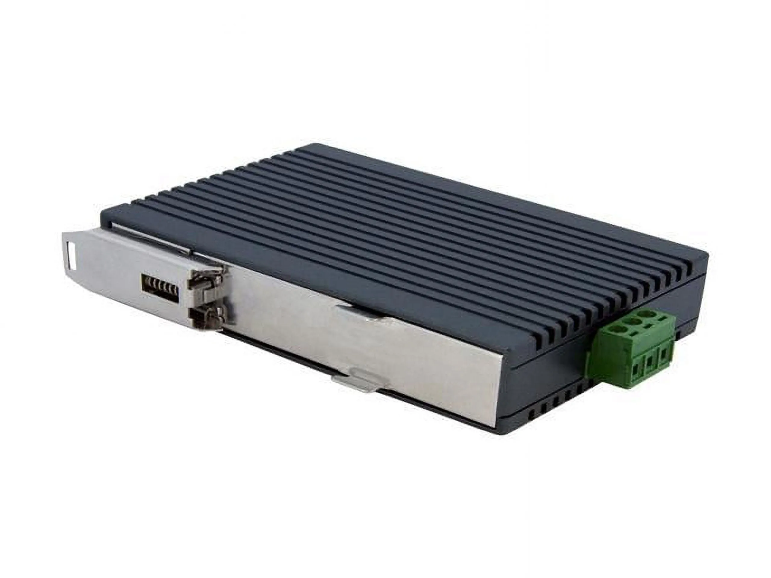 This industrial Ethernet switch is easy to install, with an attached metal bracket for DIN rail mounting on equipment racks and cabinets.