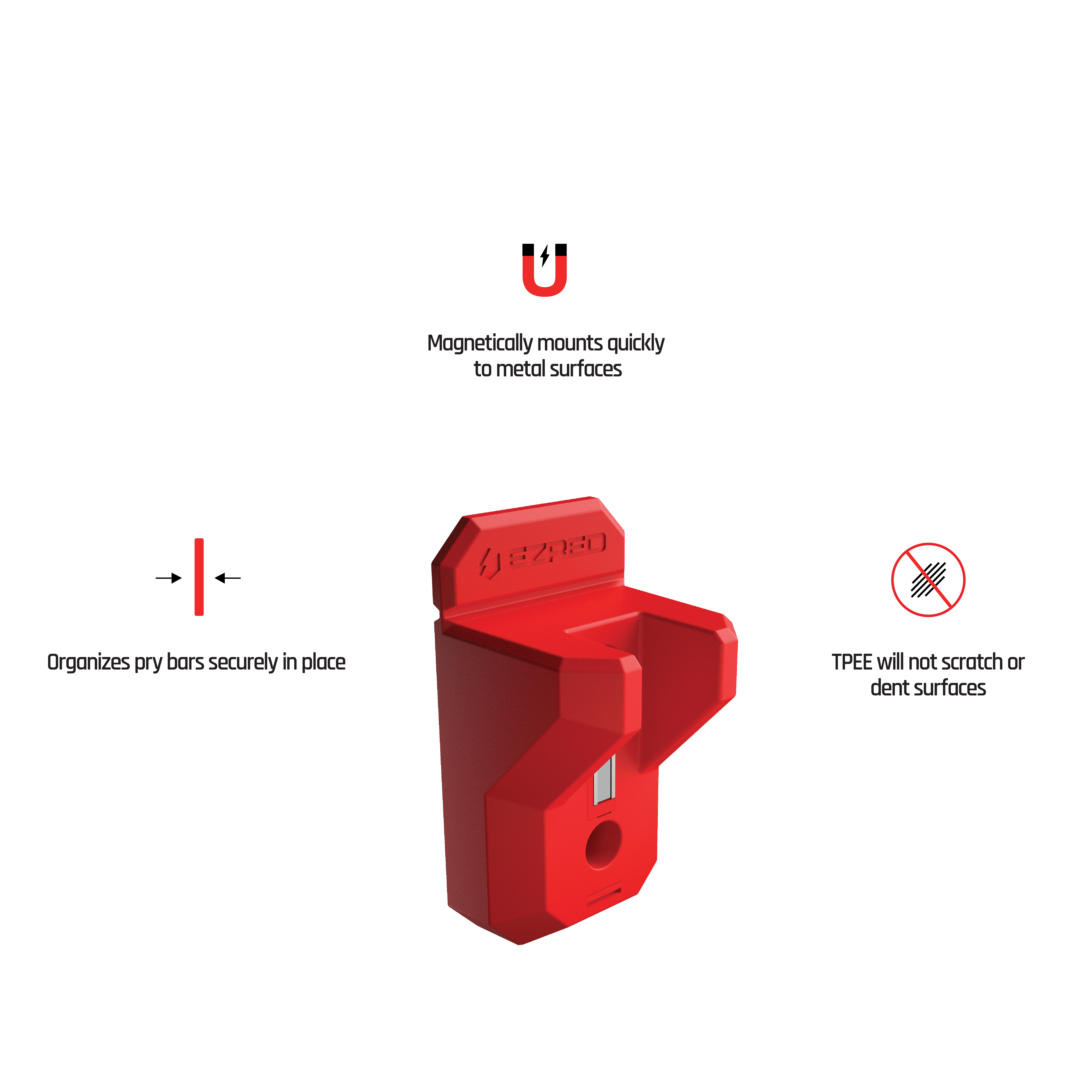 The EZRED Prybar Magnetic Holder is an innovative tool designed to securely hold your pry bars in an upright position, ensuring easy access and organization.
