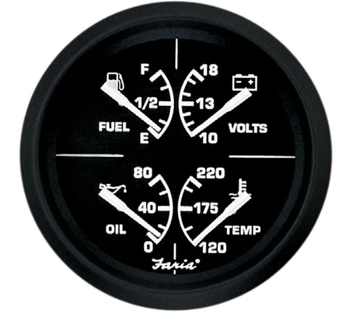 Faria 32851 Faria Euro Black 4" Multifunction Gauge Voltfueloilwater Temperature