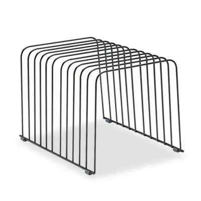 Wire File Sorter organizes files and folders on your desktop. Organize them using the 11 divider sections that vary in capacity. Black rubber feet protect your desktop. Steel sorter is 100 percent recyclable.