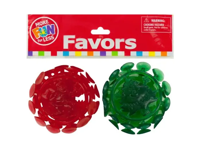 Add some fun to your holiday gatherings with the Festive Holiday Suction Dart Game Set! This exciting 4-piece set includes vibrant green and red dart disks designed with suction cups around the edges, perfect for sticking to non-porous surfaces. Each dart has a diameter of approximately 2.75 inches, making them easy for little hands to throw and enjoy. Ideal for children aged 3 and up, these darts provide hours of entertainment, whether for party favors or playtime activities. Packaged conveniently in a hanging poly bag, this set is sure to be a hit!