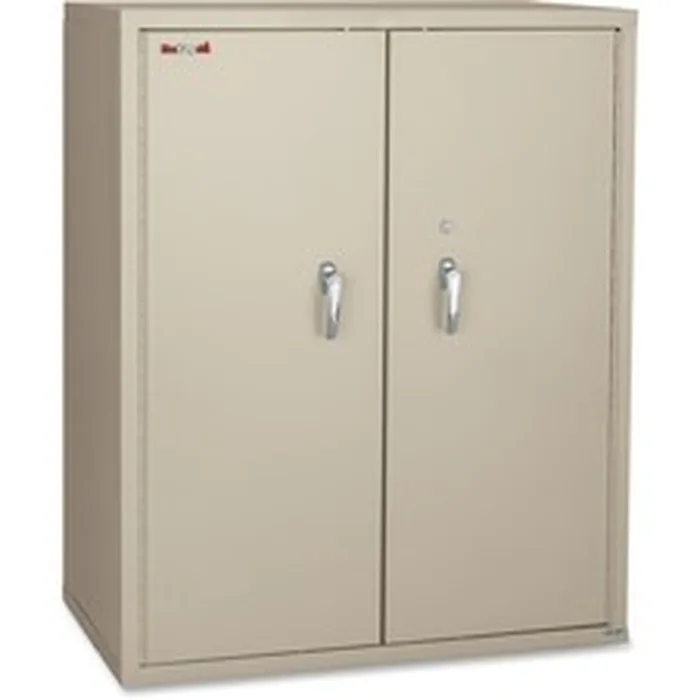 Adjustable shelves storage cabinet features a U.L. class 350 one-hour fire rating, offering protection for oversized documents, binders, end-tab filing, bankers boxes, and other valuable items. Equipped with a high-security Medeco keylock. Fire-resistant storage cabinet provides a durable scratch-resistant finish.