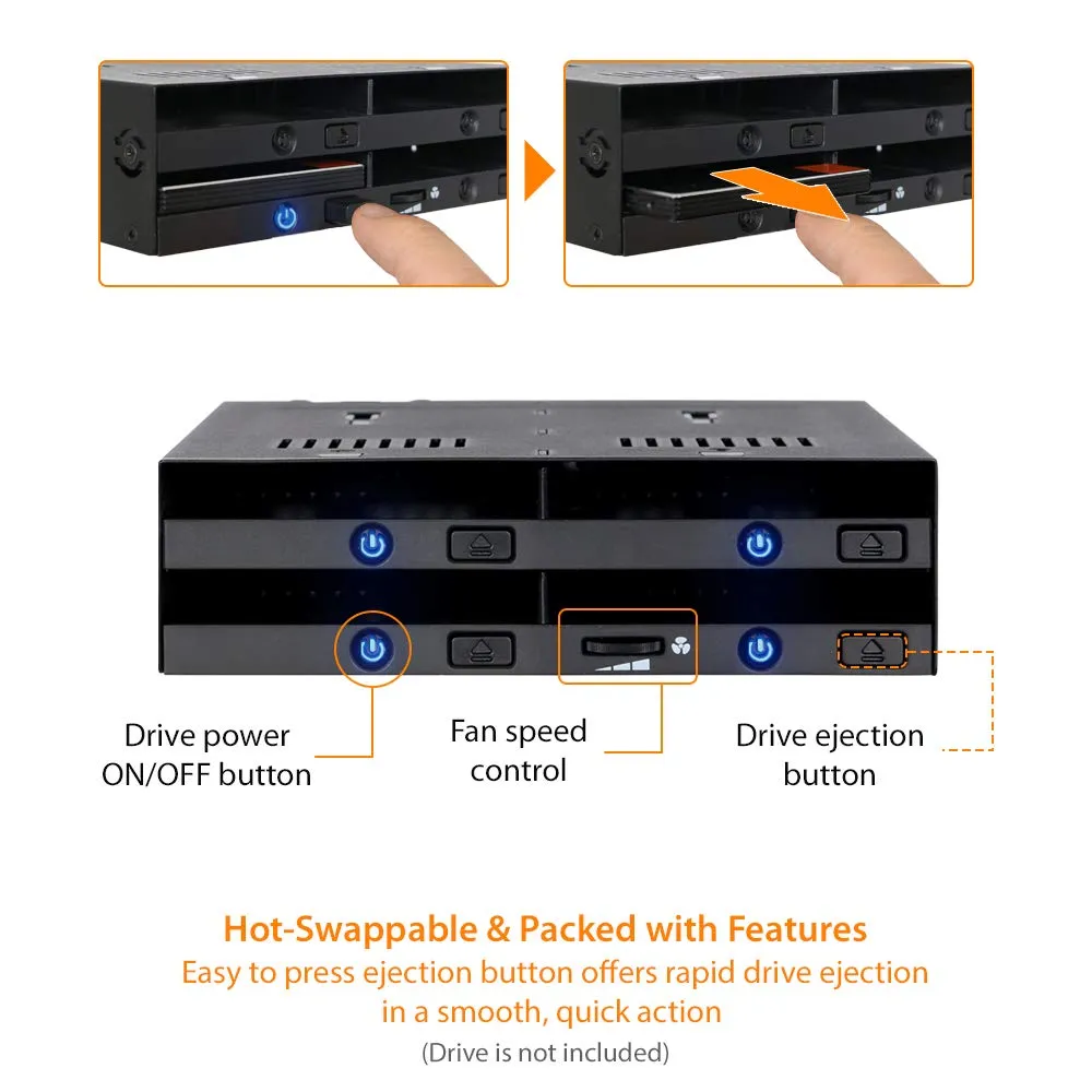 - Hot-swappable design for quick drive access