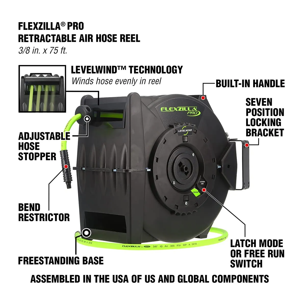 Flexzilla L8306FZ 38" X 75' Retractable Air Hose Reel