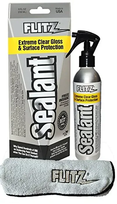 A unique product to Flitz! This is a hydrophobic spray (meaning; immediate repelling of water) that is safe on All Metals, Fiberglass, Clear Coats, All Paints, Plastics, Granite, Glass, And All Man-Made Hard Surfaces. Helps protect against Salt, UV Rays, Water Stains, Bugs, Bird Droppings, and Yellowed Headlights. A completely water-based formula producing NO SWIRLS.