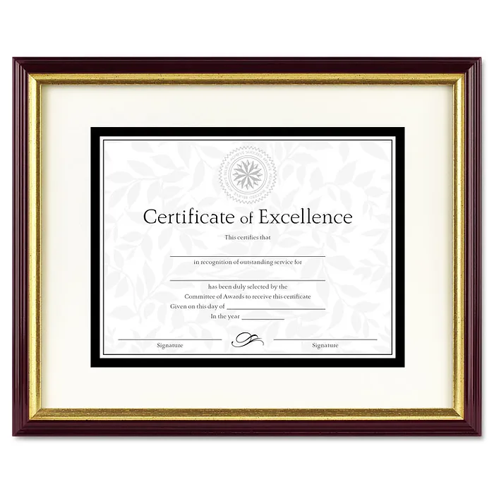 Document/certificate Frame W/mat, Plastic, 11 X 14, 8 1/2 X 11, Mahogany/gold