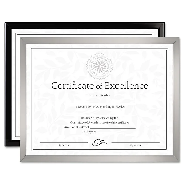 Value U-Channel Document Frames W/certificates, 8 1/2 X 11, Black, 2/pack