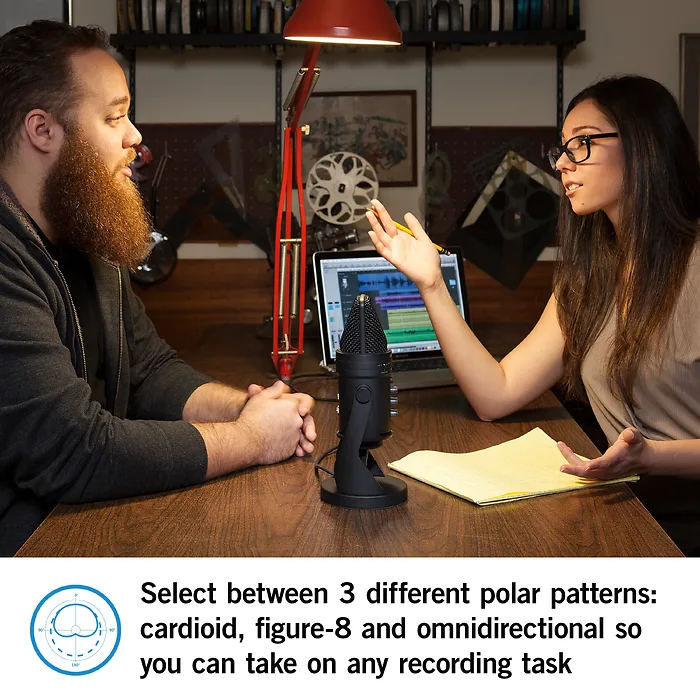 Featuring an adjustable gain control and multiple polar patterns, it provides versatility for various recording scenarios. The built-in audio interface allows for direct monitoring and easy integration with your recording software.