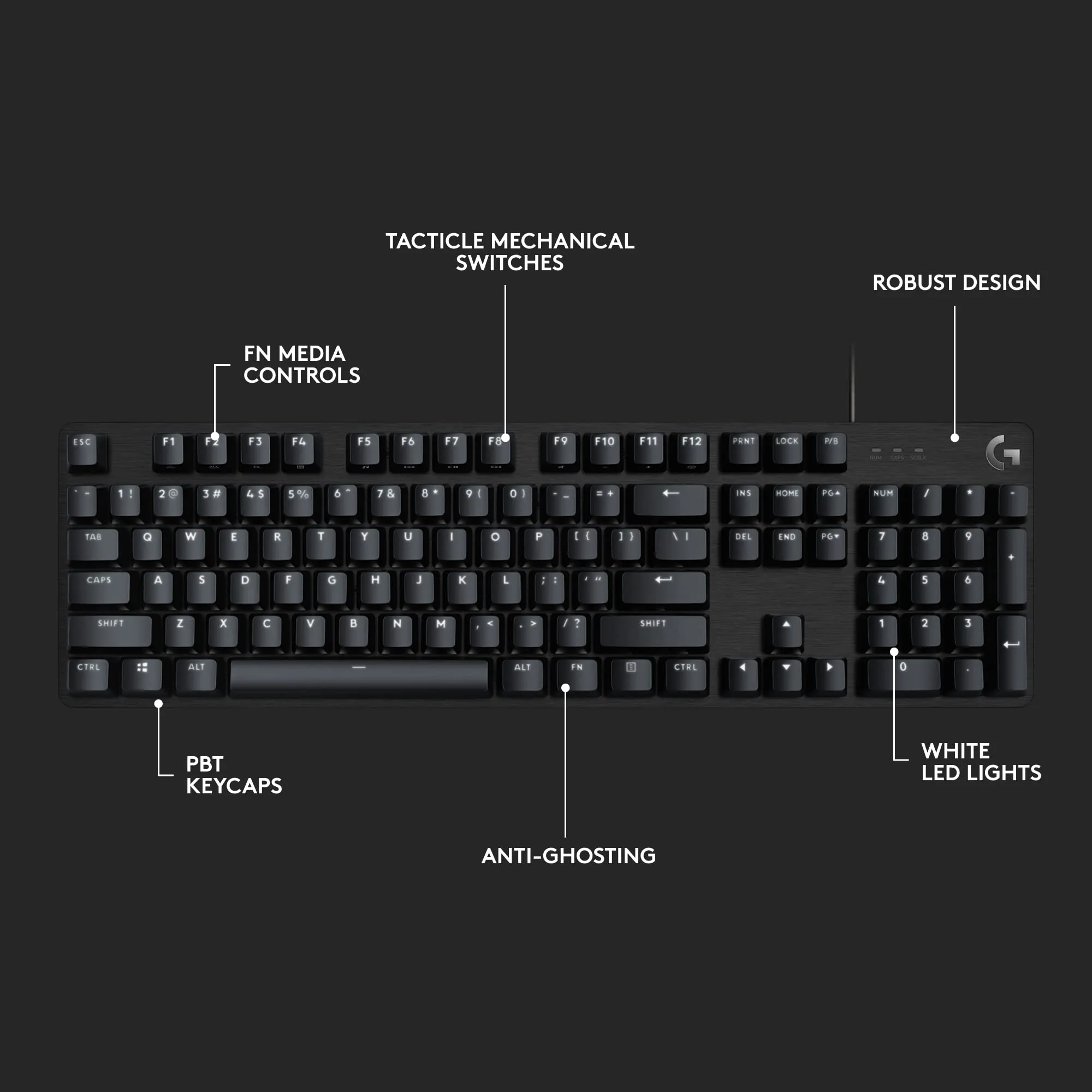 - Anti-ghosting technology for simultaneous key presses