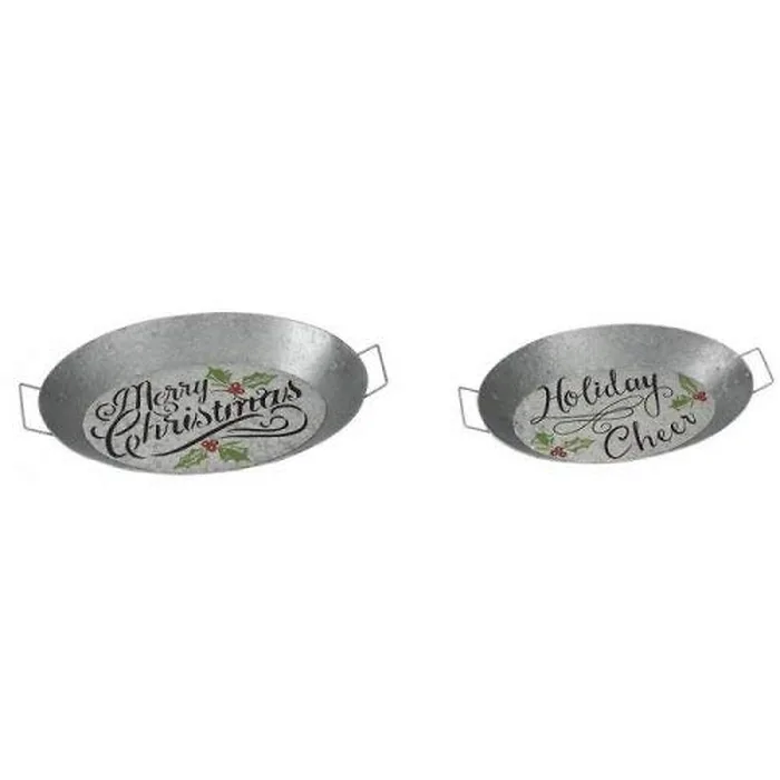Home 12010985 Galvanized Christmas Tray Set Of 2